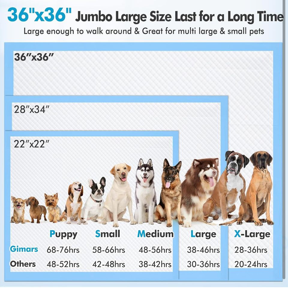 Brand New Gimars 4XL 36x36 Dog Pee Pads Extra Large - 200 Counts, Thicken Extra Absorbent Pet Training Puppy Pee Pads, Quick Dry Leak Proof Jumbo Dispo